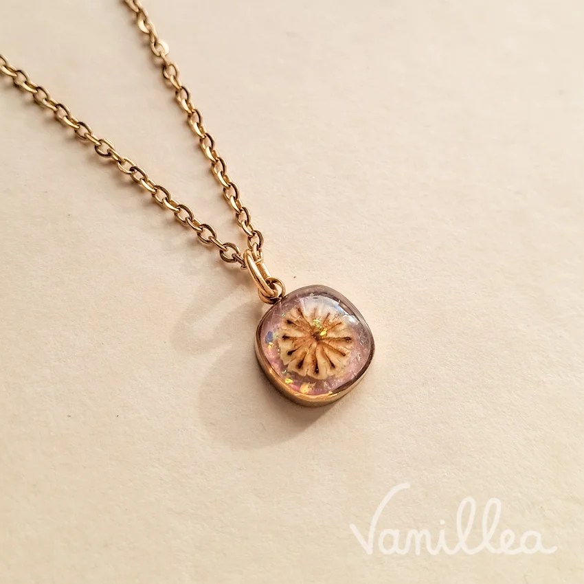 Capsule naturelle – Collier fleur naturelle coquelicot rose